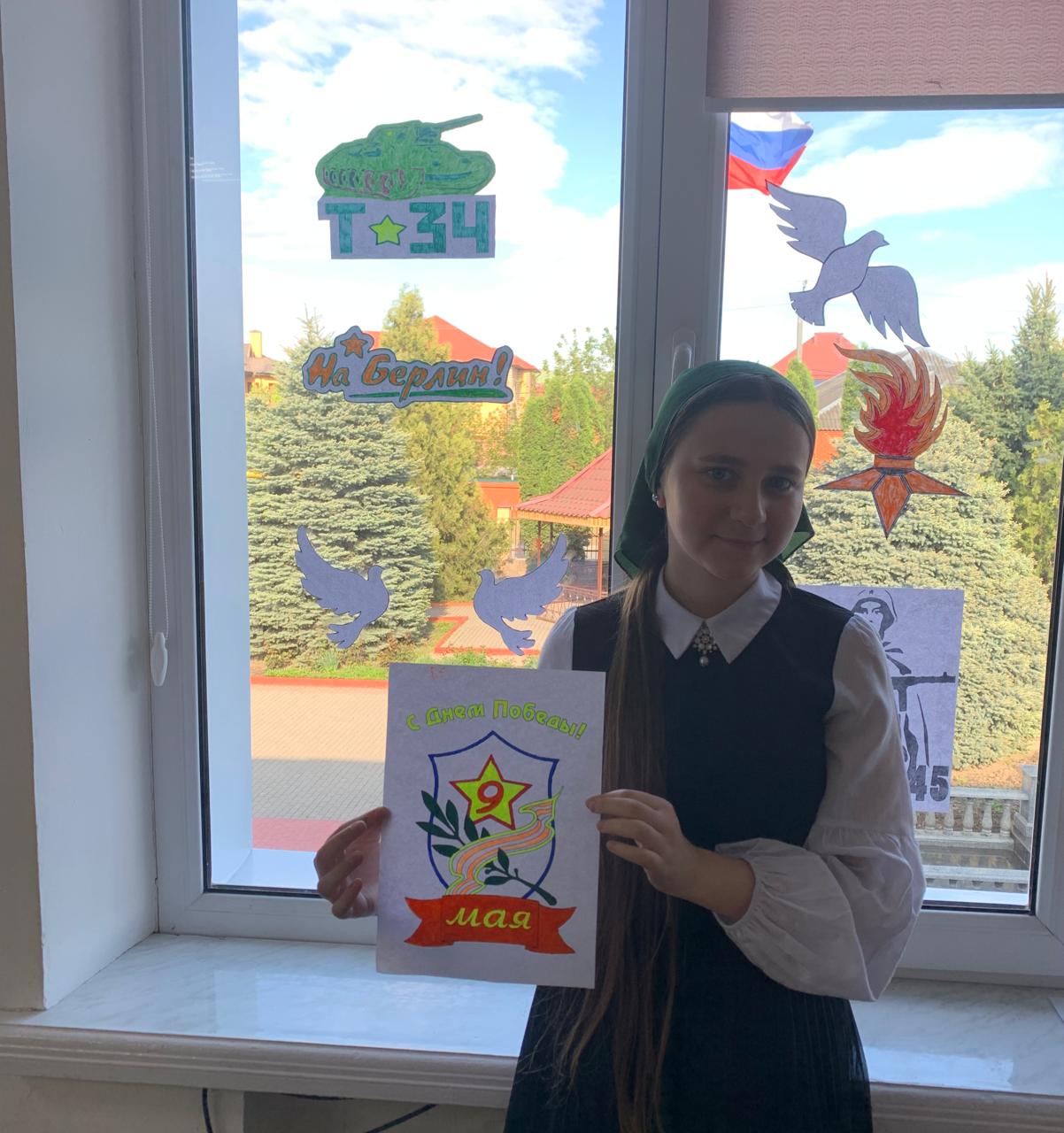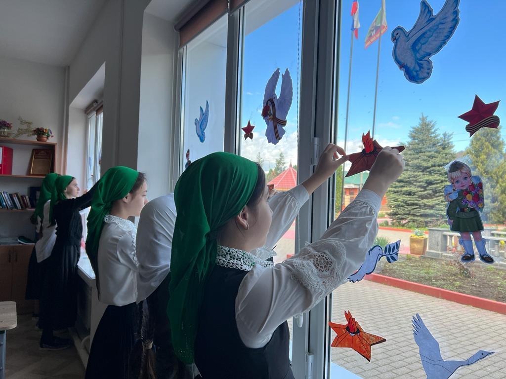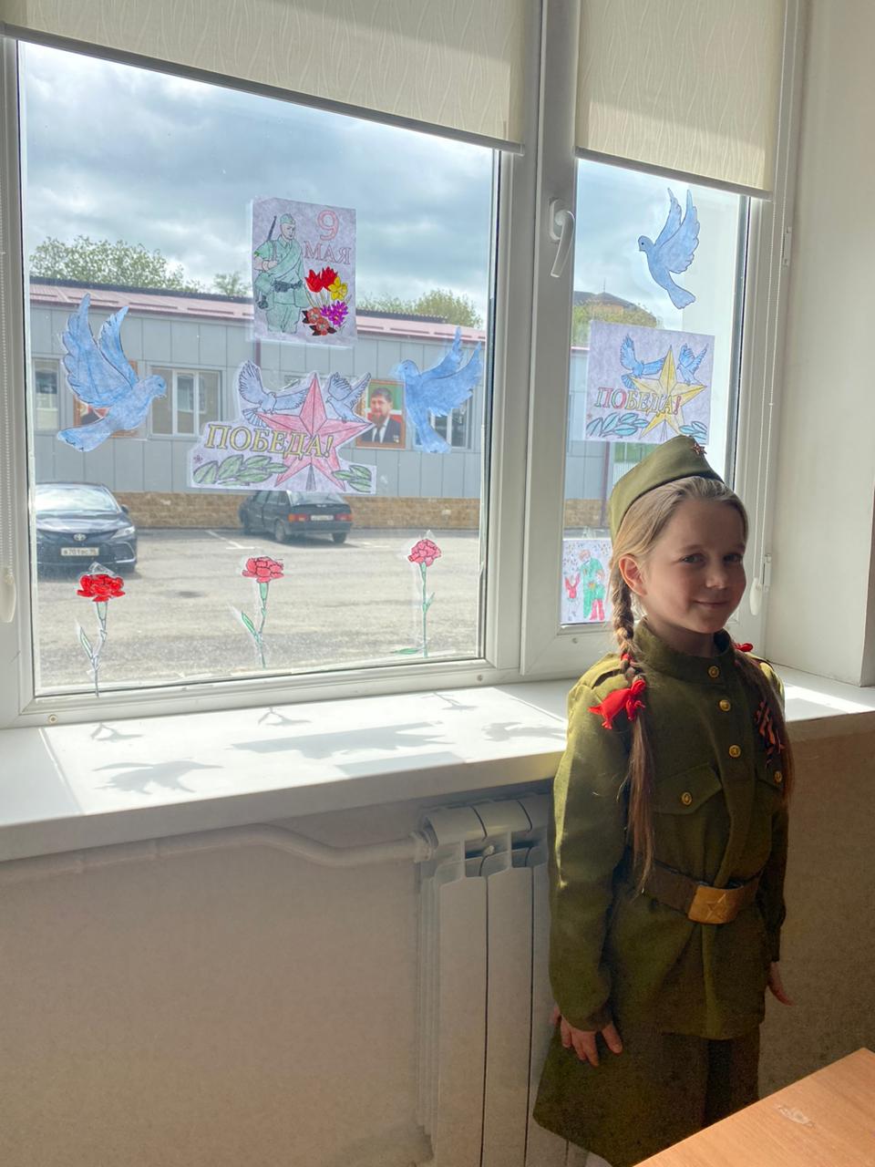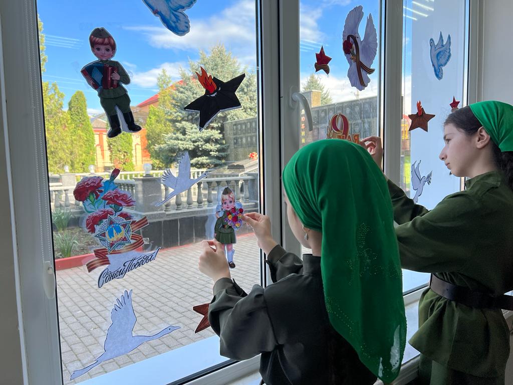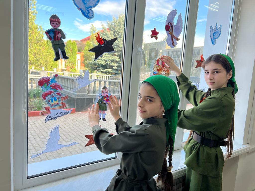 3 мая в МБОУ "Ахмат-Юртовская СШ 1 им А-Х.Кадырова" активисты РДДМ " Движение первых " организовали и провели акцию" Окна Победы"