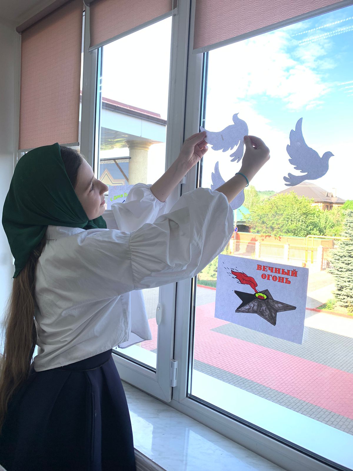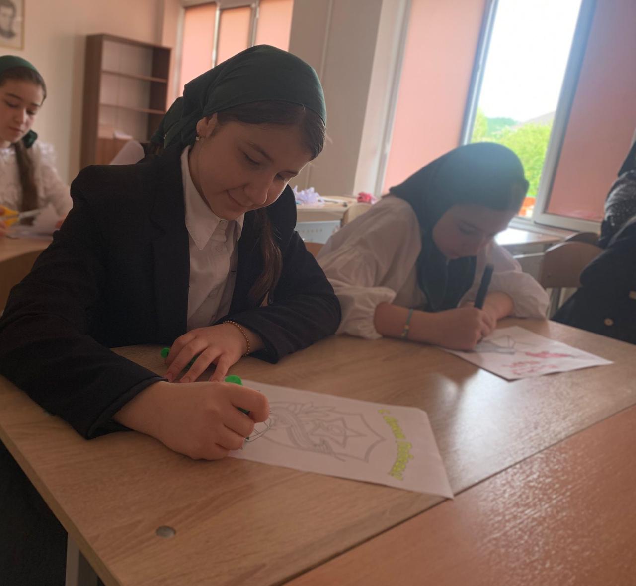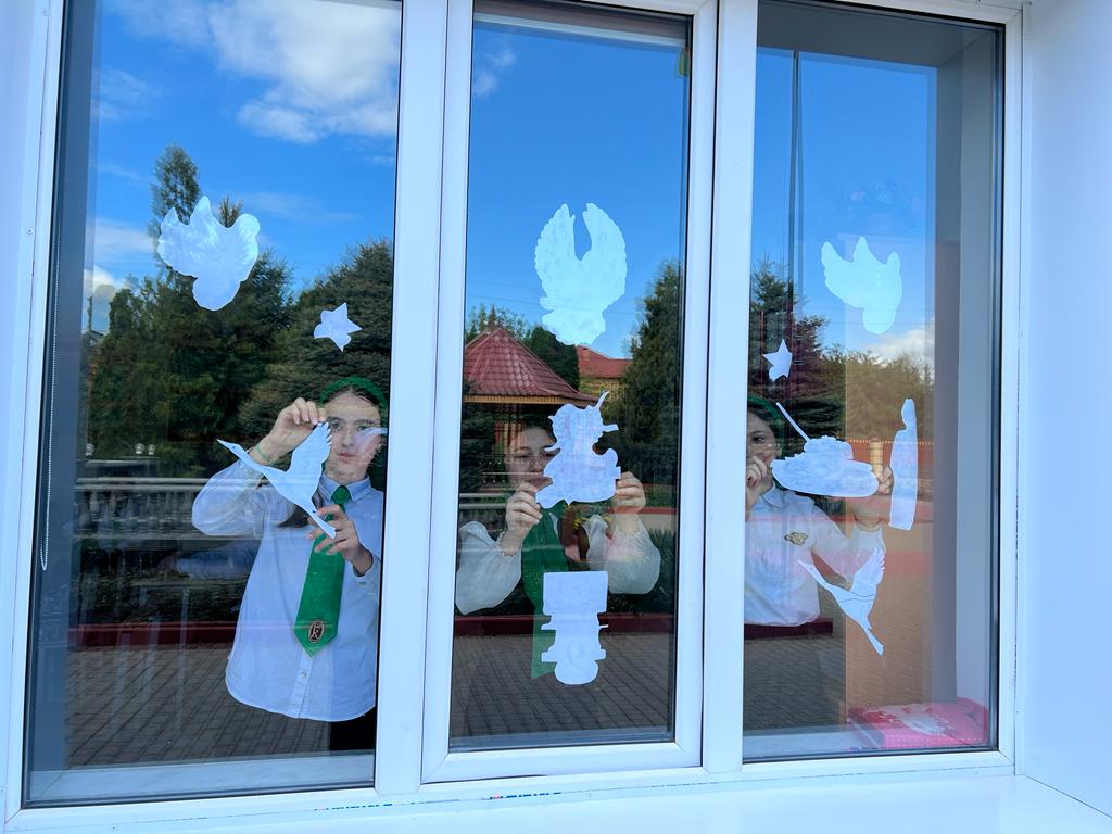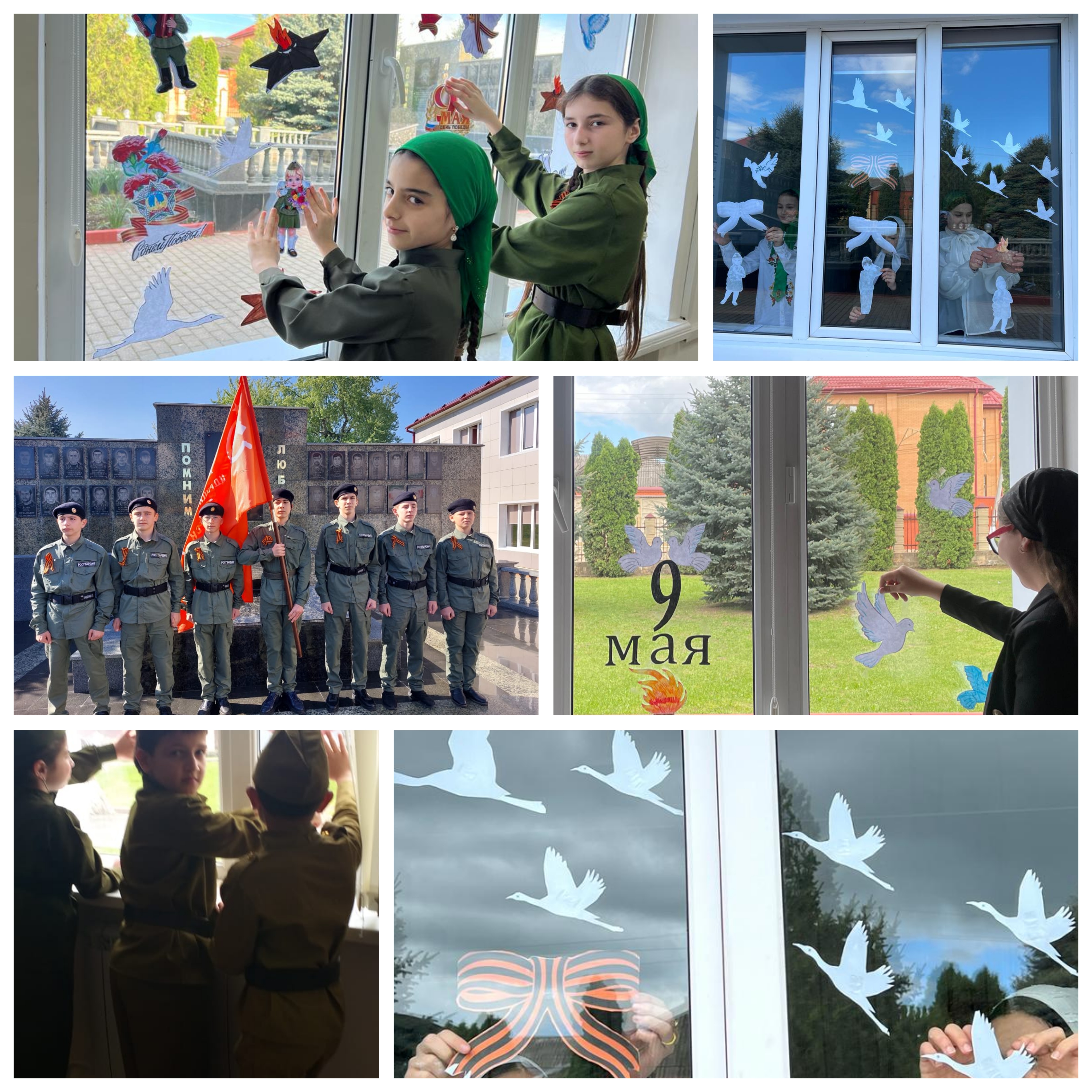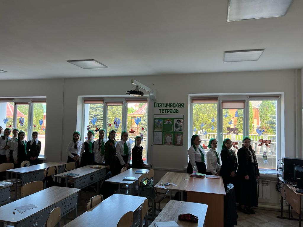 3 мая в МБОУ "Ахмат-Юртовская СШ 1 им А-Х.Кадырова" активисты РДДМ " Движение первых " организовали и провели акцию" Окна Победы"