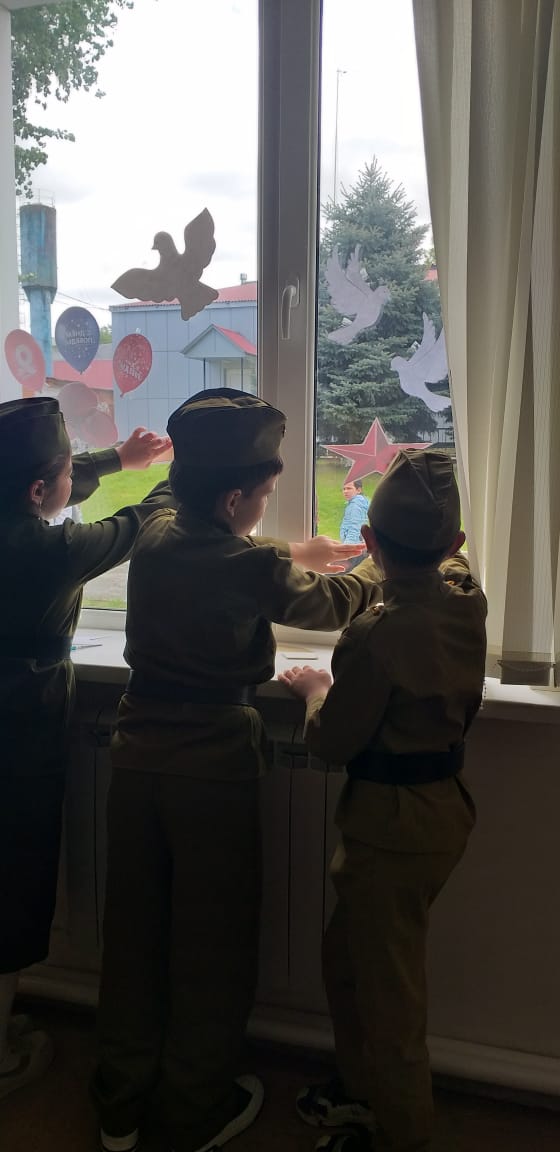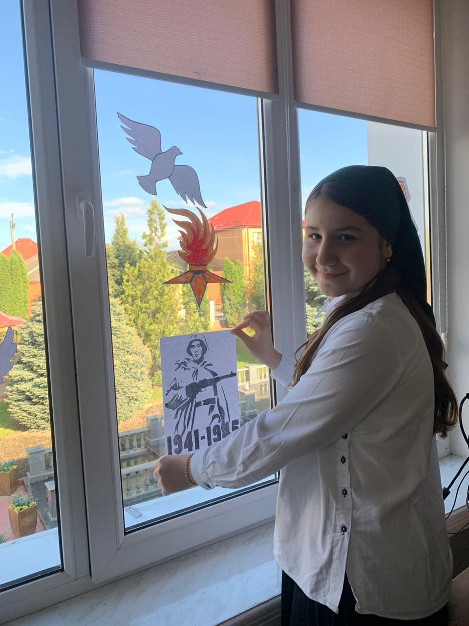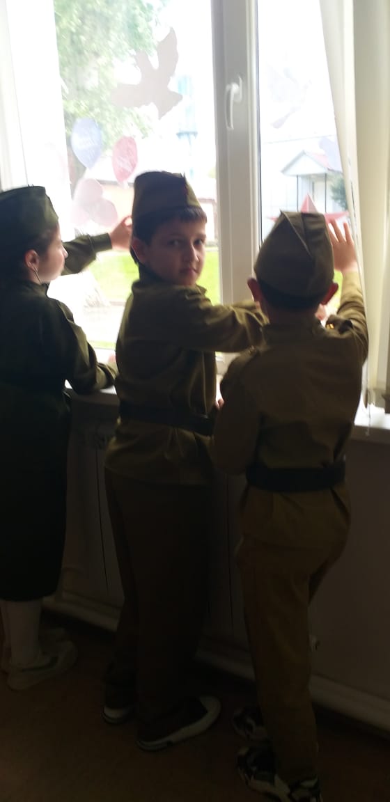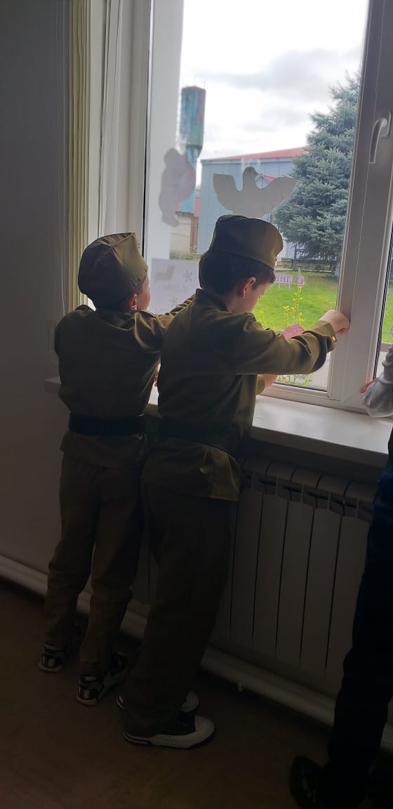 03.05.2023приуроченную 78- летию Великой Победы советского народа над фашистской Германией. " Окна Победы" - одна из акций, символизирующих стремление показать подвиг, который совершили наши предки в годы Великой Отечественной войны 1941- 1945 годов."Помнить тех, кто погиб, защищая свою Родину,помнить, какими усилиями и какой ценой досталась эта Победа- наш долг.Вечная память героям".Это одна из запланированных акций "Движением первых", - отметил Абдулкаримов Умар Хамидович, руководитель РДДМ "Движение первых" МБОУ "Ахмат-Юртовская СШ 1 им А- Х.Кадырова".