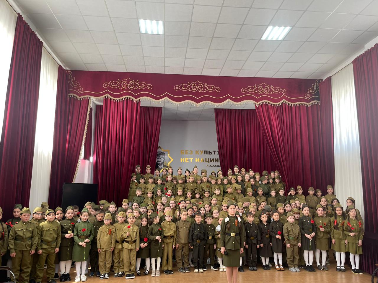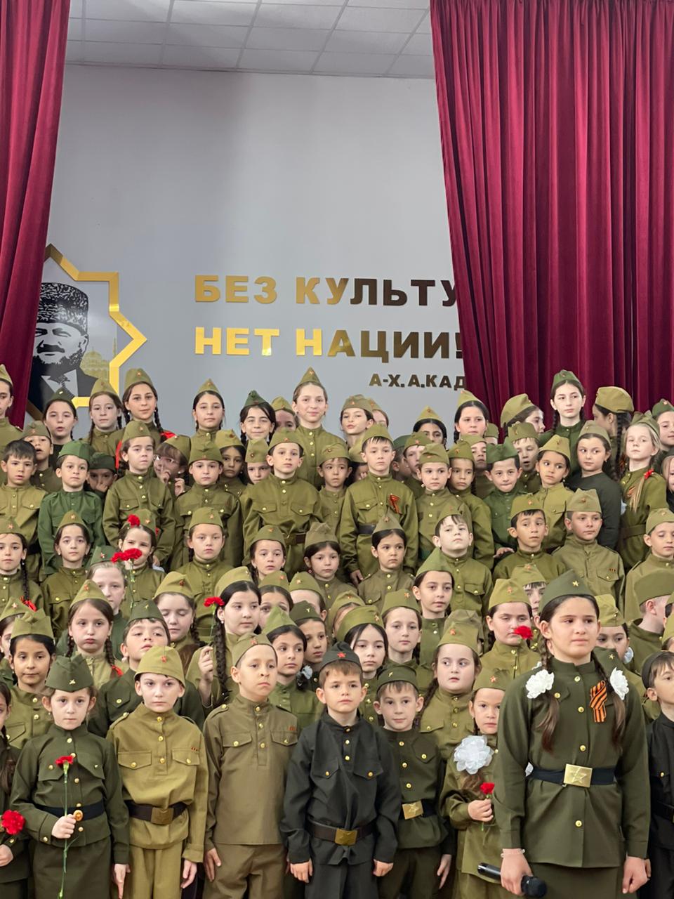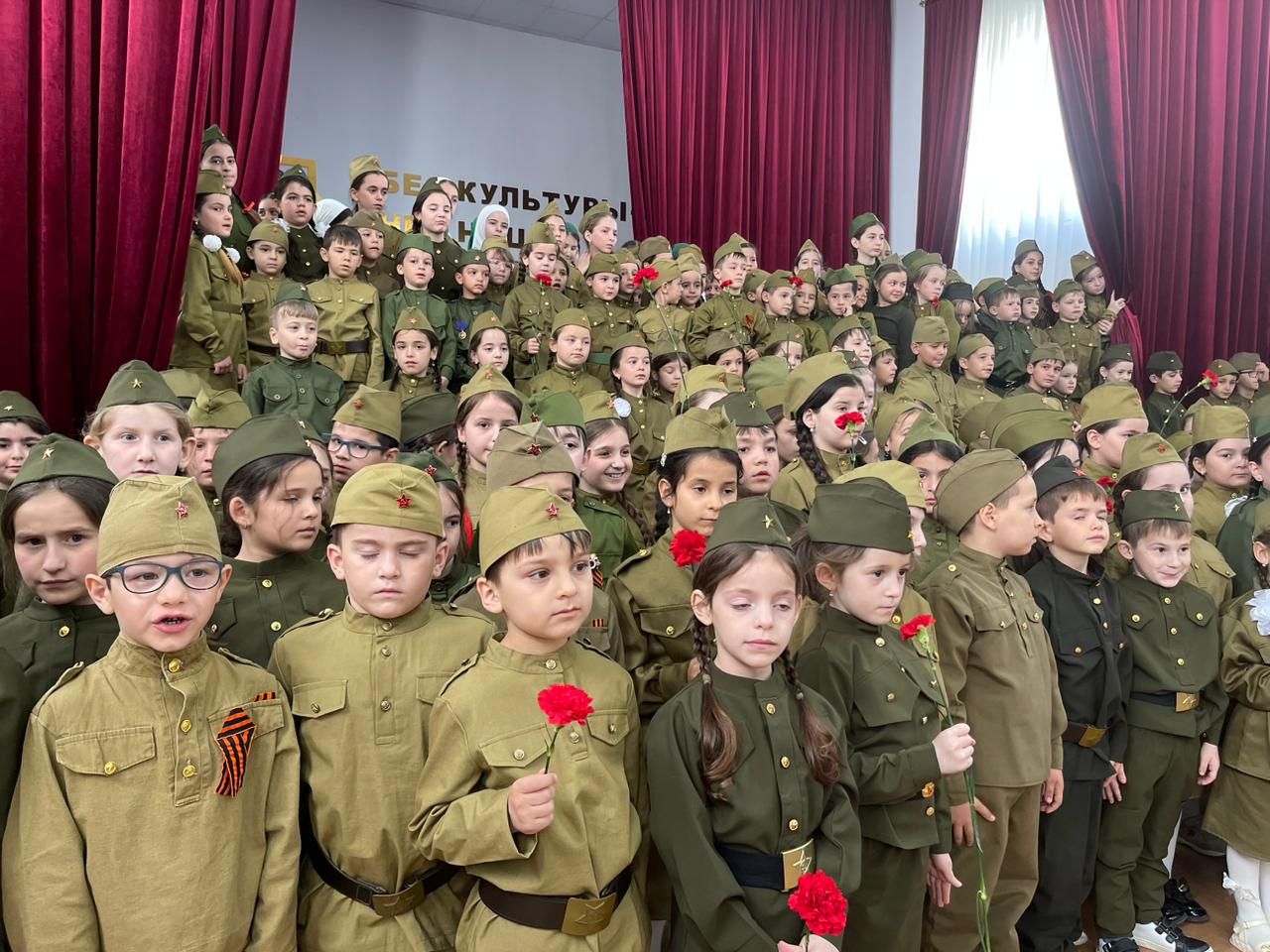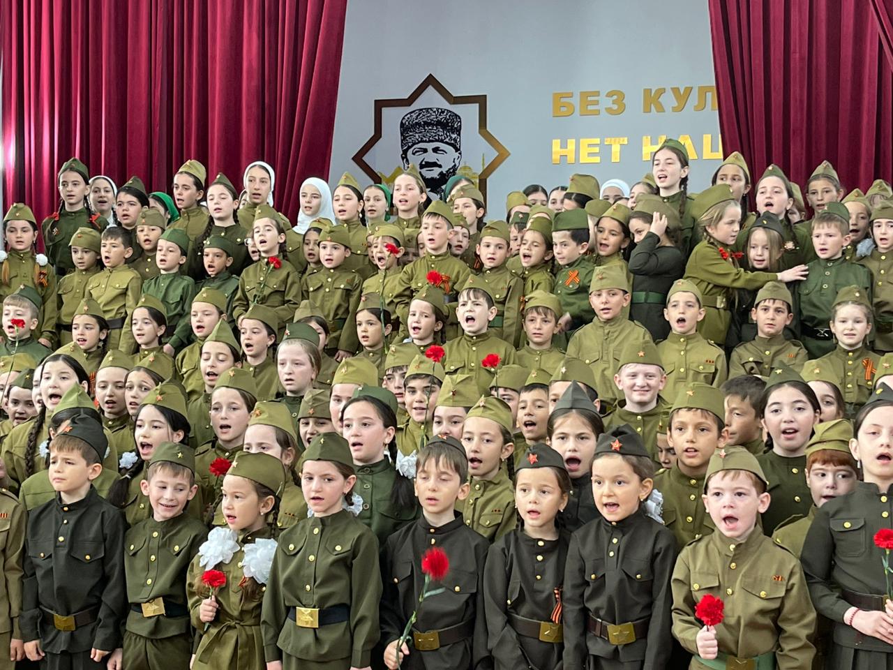 сводным хором школы из числа обучающихся 1- 7 классов, солист Садулаева Ясмина.Мероприятие было приурочено 78- летию победы советского народа в Великой отечественной войне." День Победы"- одна из самых популярных и ярких композиций из числа посвященных Великой Победе.