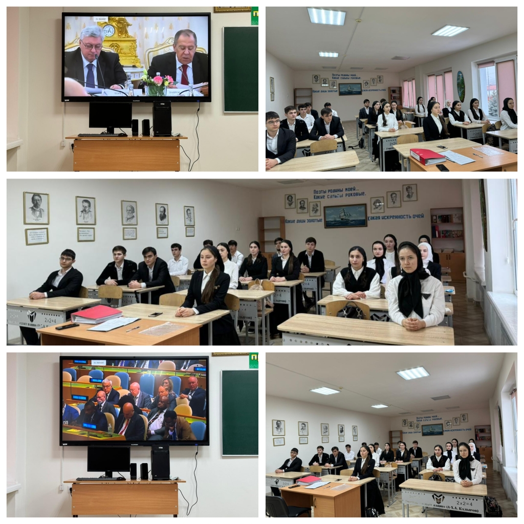 29 января состоялась церемония поднятия флагов РФ и ЧР.Проведена линейка, где обсуждались итоги прошлой учебной недели и проведенных мероприятий , приуроченных знаменательным датам: