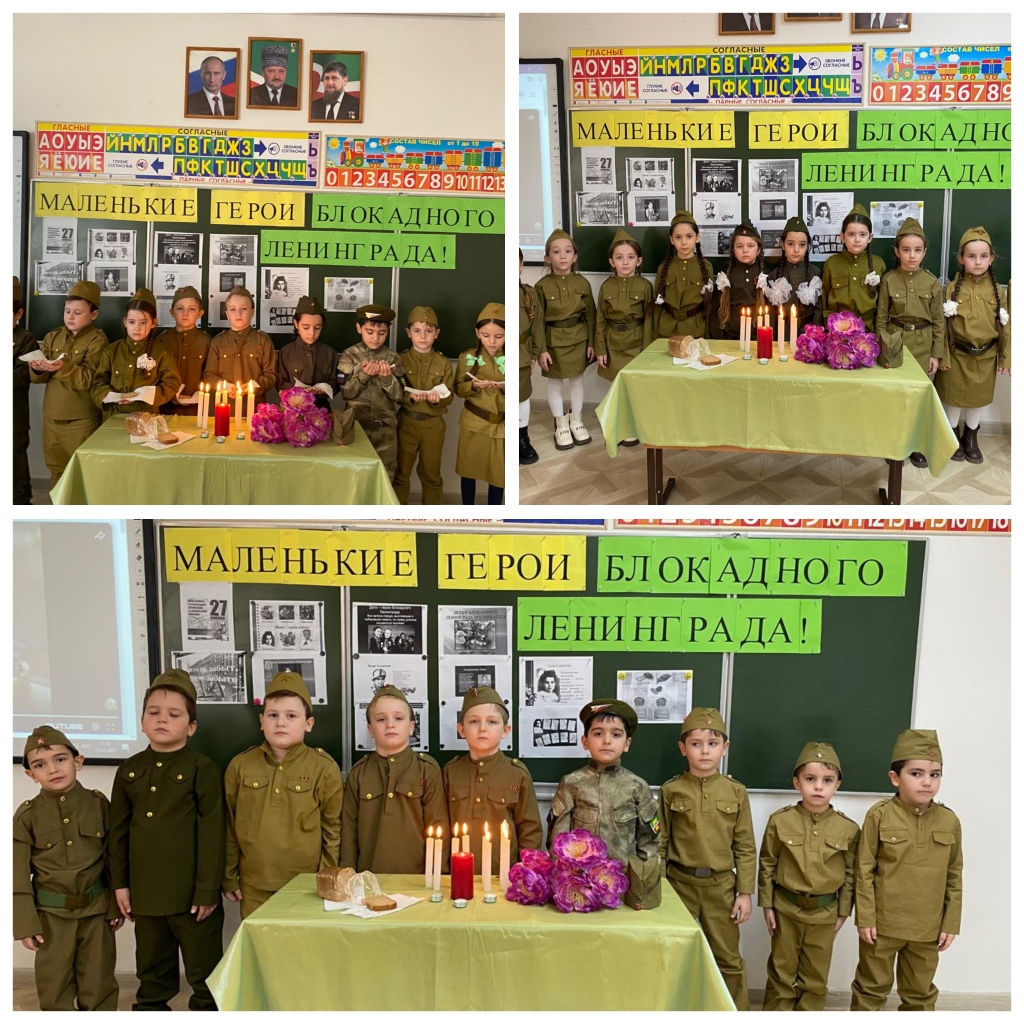 23.01.2025В 1а классе МБОУ"Ахмат-Юртовская СШ 1 имени А-Х.Кадырова" проведено мероприятие " Маленькие герои Блокадного Ленинграда" , учитель Алиева Зулай Рамзановна.Цель:- воспитание патриотизма, чувства гордости за свою страну, за свой народ;- познакомить обучающихся с понятием блокада;- пробудить чувство сострадания и гордость за стойкость и героизм народа в период блокады Ленинграда и на протяжении всей Великой Отечественной войны.