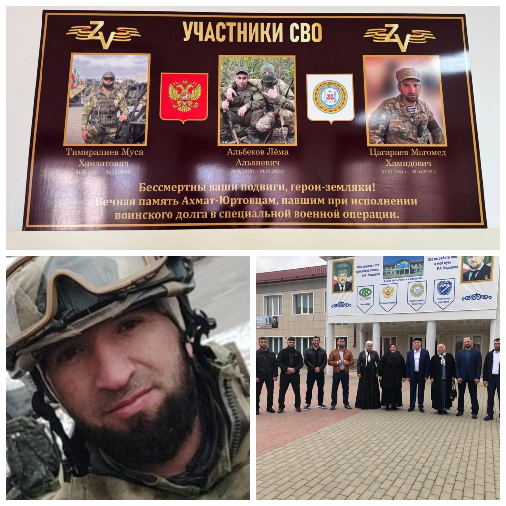 15.10.2025Стенд " Участники СВО" посвящен героям- участникам СВО на Украине.Цагараев Магомед, младший оперуполномоченный 1 отделения физической защиты 1 отдела СОБР «АХМАТ» Управления Росгвардии по Чеченской Республике , выпускник МБОУ" Ахмат- Юртовская СШ 1 имени А- Х.Кадырова".Участвовал в СВО с первых дней. Героически погиб 26 апреля 2022 года. Награждён Орденом Мужества (посмертно).Присуждено Звание " Герой Чеченской Республики".