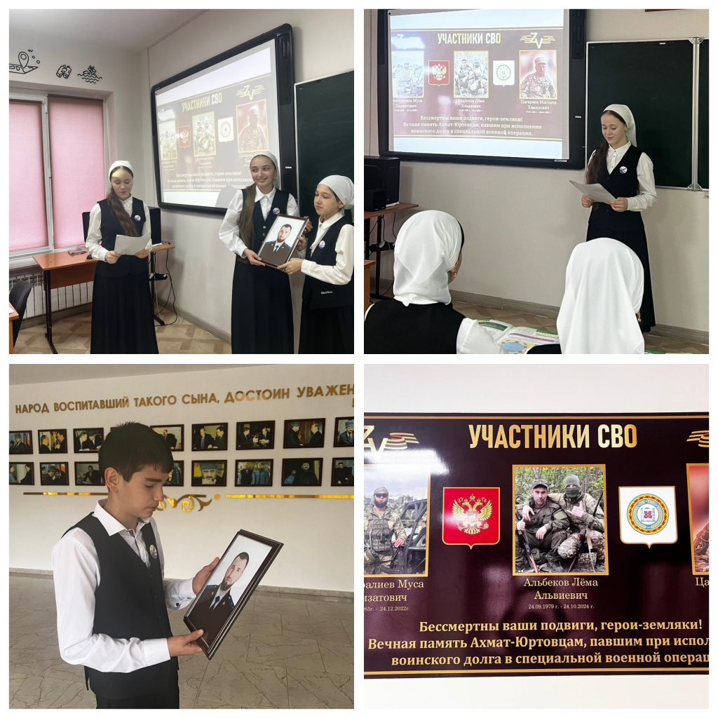 07.11.2025В рамках национального проекта «Молодежь и дети» 6 ноября в МБОУ «Ахмат-Юртовская СШ №1 имени А-Х. Кадырова» проведено мероприятие « Магомед Цагараев — пример подвига и служения Родине» среди 7 классов.