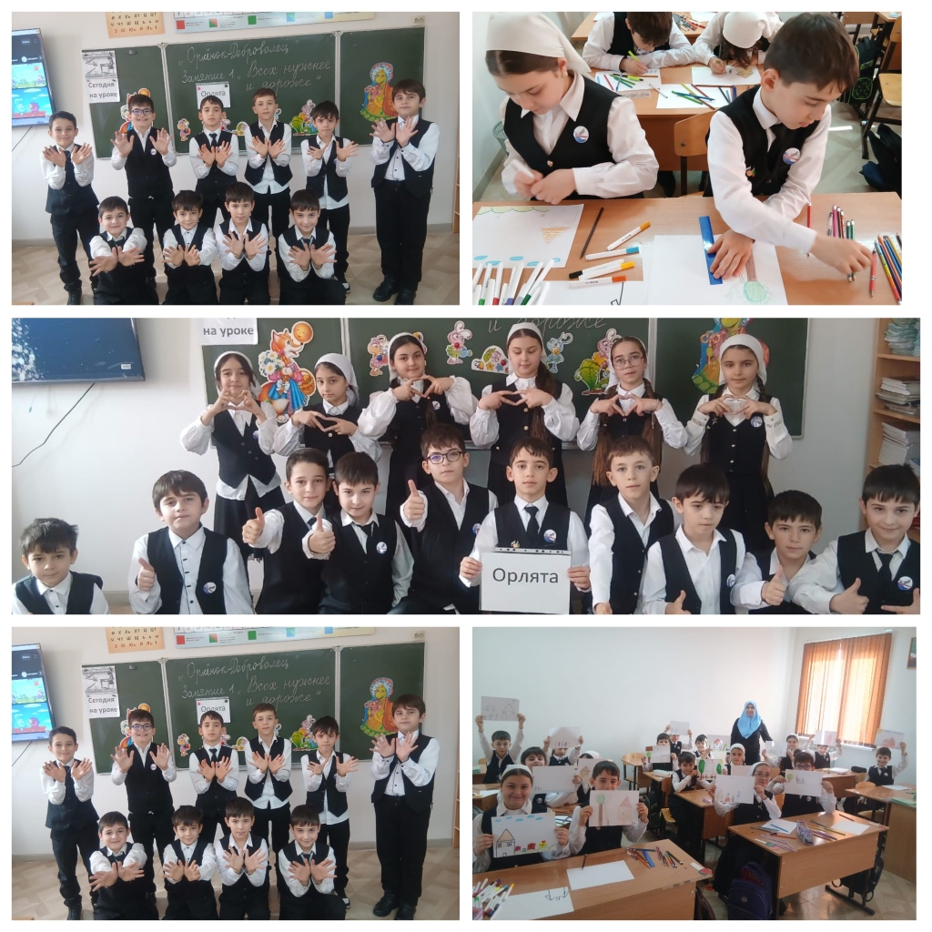 в МБОУ "Ахмат-Юртовская СШ 1 имени А-Х. Кадырова" в целях реализации трека "Орлёнок-Доброволец " в 4 а классе проведено занятие 1. "